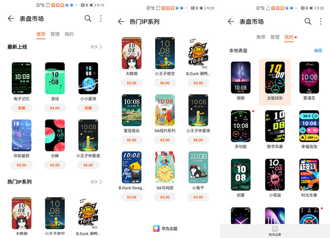 另外用户可以通过表盘市场下载表盘,目前提供多达300多个不同的表盘下载。