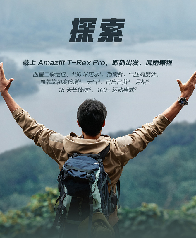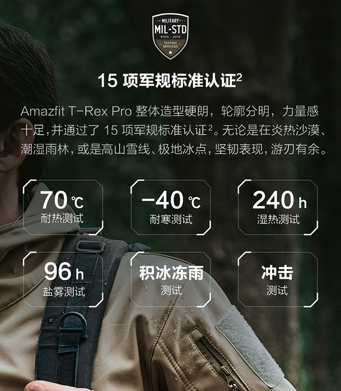 对于喜欢户外运动的用户来讲,各种不确定的天气条件,比如在高原地区天气变化不定,随时下雨,这款手表出色的防水性能,让我们在极端恶劣的天气环境依旧能够正常工作,另外华米Amazfit T-Rex Pro经过了15项军规级认证,让我们从容穿梭在沙漠、雨林、雪山等地,在抗冲击表现方面,这款手表表现同样极其出色,即便在运动过程中出现磕碰,也能够做到轻松应对,在“硬核”方面,这款手表不论是外观还是品质,都非常地出色。