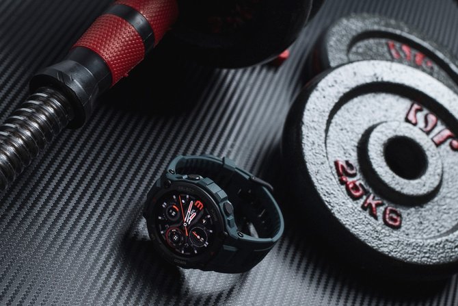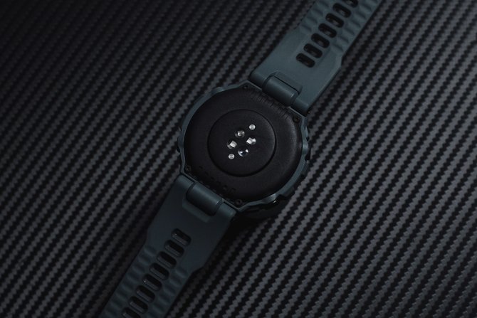 在机身的侧面是4个实体物理按键,能够提供更加真实地体验机械多功能腕表的感受,并且按键的手感很好,按下去反馈良好,同时整块手表经过15项军规标准认证,在极寒、极热、抗冲击等方面的表现都非常出色,搭配上AOD全天候常亮显示,带来和传统户外腕表几乎一致的观感,但是这款智能腕表在功能方面,可是一般腕表所不能企及的,在佩戴感受方面,这款手表虽然看似非常有分量,但是整个手表的重量仅为60g,搭配上硅胶亲肤表带,佩戴起来根本没有任何负担,近乎裸感,舒适度方面,满分。