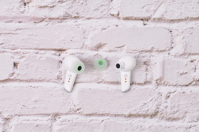 在耳套方面,NeoBuds S辉夜黑款配备了灰色透明抗菌耳套,耳套中央使用了绿色喷涂式设计。而天际白款则采用了与之搭配的白色透明耳套,耳套中央同样采用了富有动感的绿色设计,使得耳机整体略显时尚。