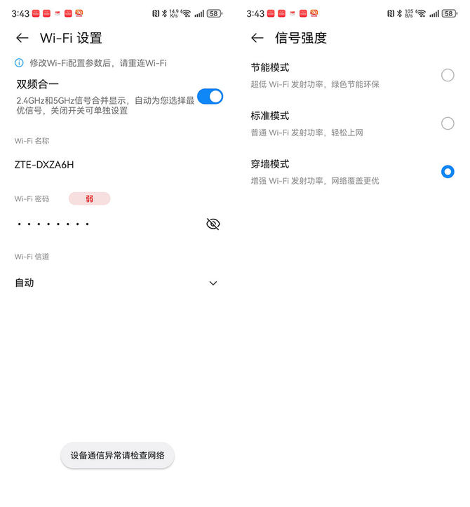 新一代智慧家庭 APP 引入了信号强度设置功能,用户可灵活选择节能、标准或穿墙三种模式,根据实际需求优化 Wi-Fi 信号传输方式,以实现更高效的网络体验。MESH组网设置得到了强化,用户可轻松创建和管理一个稳定而高效的 Wi-Fi 网络覆盖,确保各个区域都能享有强大的信号覆盖。