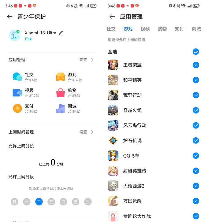 新增的接入设备白名单功能提高了网络安全性,用户可设置白名单,仅允许白名单内的设备连接网络,有效防止未经授权的设备访问网络。为满足家庭需求,青少年保护功能针对超过 68 款 APP 进行定向管理,防止孩子沉迷网络。用户可对社交、游戏、视频、购物、支付等多种行为进行有针对性的保护,自定义上网时长及时段。