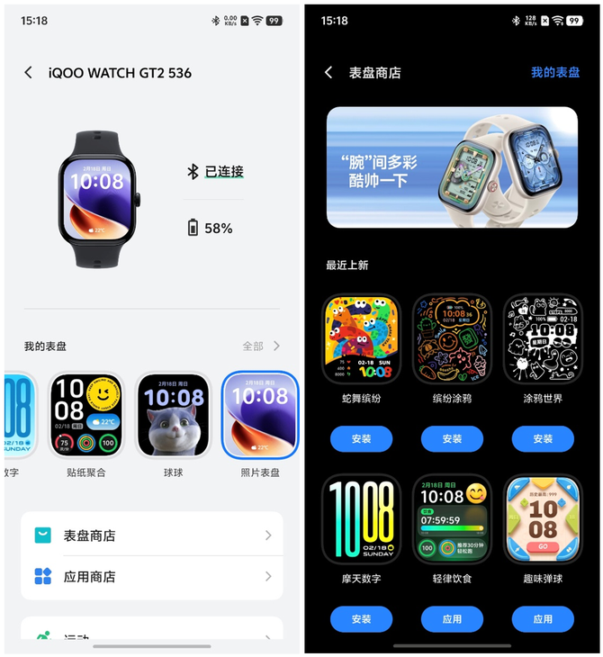 表带的快拆设计也得夸一句,之前换表带要找工具撬半天,这个轻按卡扣就能拔下来。晨跑时戴软胶表带,吸汗不闷还防滑;通勤换米兰尼斯表带,金属质感显利落;周末想搭卫衣,就换成浅绿色编织表带,一周换三种风格,不用额外花时间折腾。表盘选择也多,几十款样式里有简约款、动态款,还能把跑步拍的风景照设成照片表盘 —— 用手机 NFC 碰一下就同步,比翻设置菜单快多了,偶尔还能在表盘上玩把经典弹球,排队等咖啡的碎片时间再也不无聊。