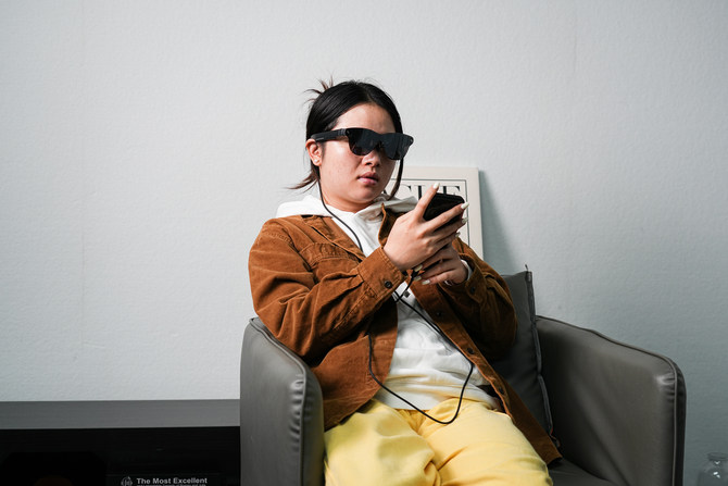 下面和大家聊聊天使用场景,实际使用场景来讲,这款眼镜可以满足多场景使用,譬如闲暇时光,窝在沙发上追个剧,不论是坐着、躺着还是趴着,这款眼镜都能满足,另外就是出差用户了,不论是高铁、飞机,连接到你的手机、平板,都可以直接进行追剧,另外对于年轻人来讲,在外租房,没有太大的空间摆放硕大的电视,那么这款眼镜也恰恰解决了这部分用户想要大屏体验的痛点需求,不需要太高的价格,就能获得巨幅大屏视觉体验,这在此前是难以想象的。
