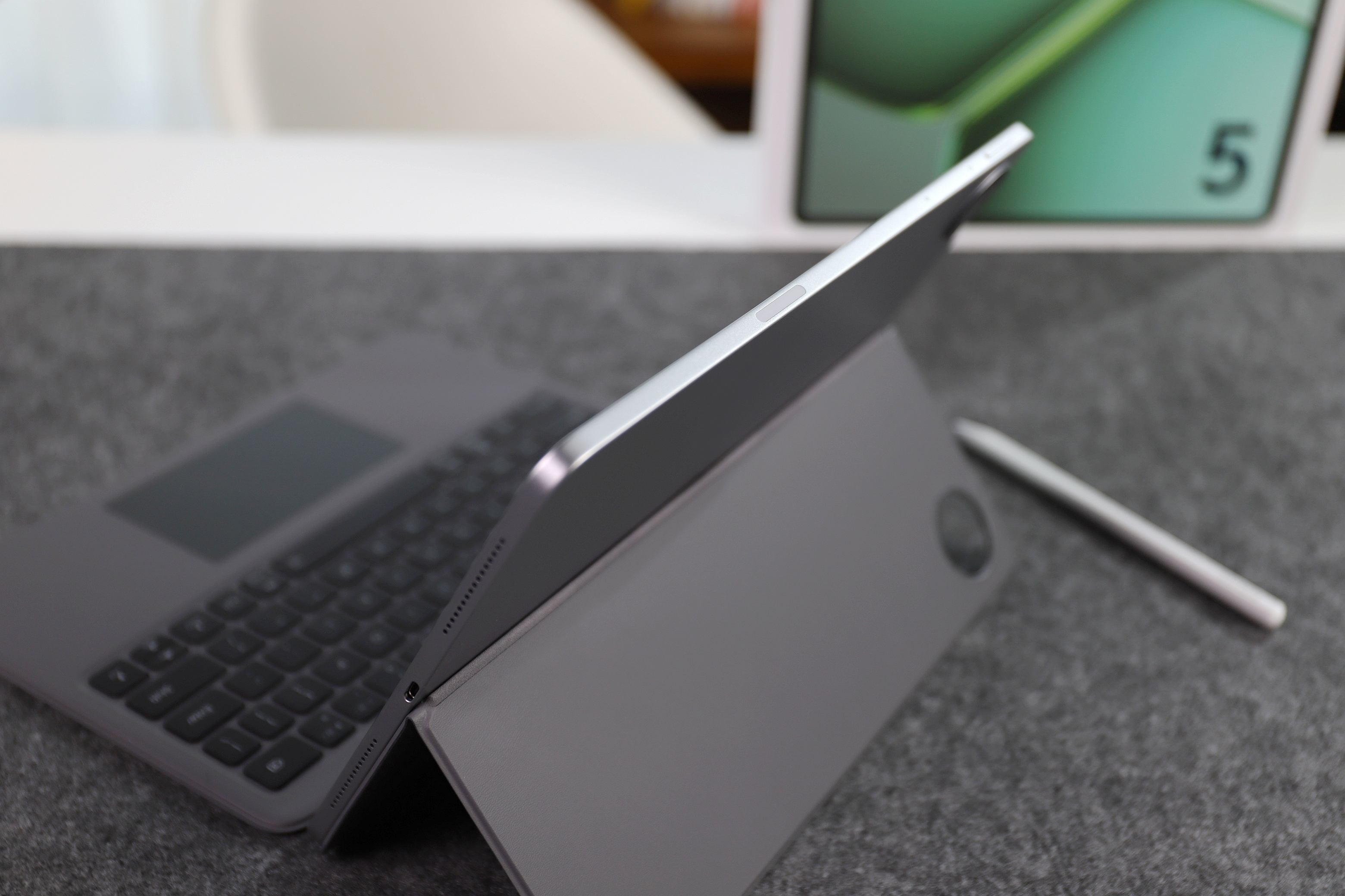 细节上也很用心:机身顶部有磁吸区域,搭配 iQOO 智能双面夹(需单独购买),支持 140° 无级调节,无论是打字、画画还是看电影,都能找到舒适的角度。