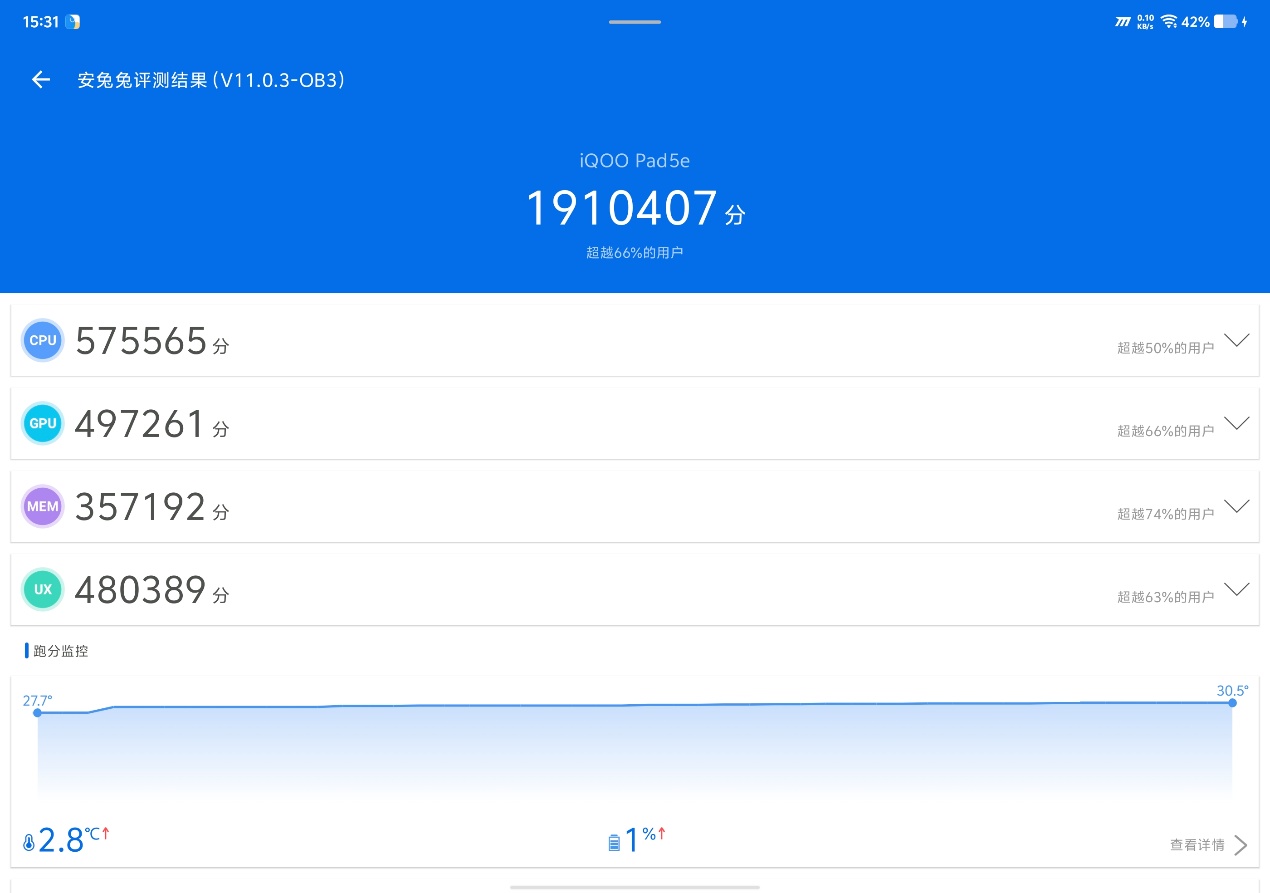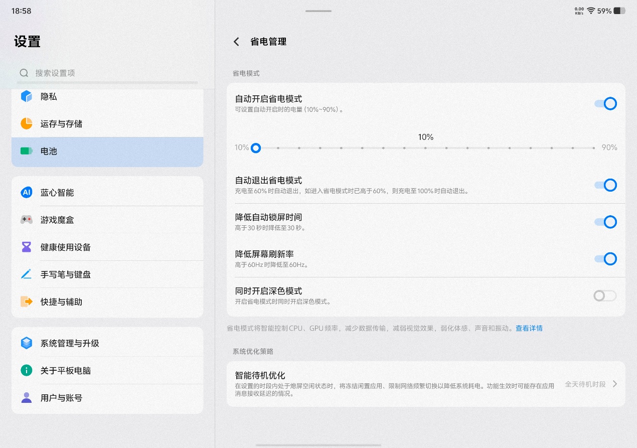 iQOO Pad5e 内置了 10000mAh 大电池,果然还是大平板更给力。官方数据显示,它的 “会议通话续航” 可达 13.3 小时,“离线观影” 可达 12.6 小时,这个表现比很多旗舰平板还强。更难得的是,iQOO Pad5e 还做了 “能耗瘦身”—— 通过 “系统轻量化” 技术,后台应用会被 “轻载化”,避免偷跑耗电;“智慧休眠” 优化了熄屏后的资源调度,哪怕平板放着不用,电量也掉得很慢,说实话,除了重度打游戏时可以看到电量下降,正常使用真的很难测试续航时间,我是真耗不过它!