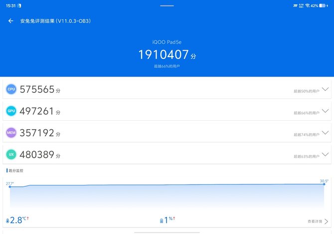 说实话,到了12英寸的产品,打游戏未必是一件很舒适的过程,主要是太大了,相对比手机、小尺寸的平板,12英寸并不适合随时随地拿出来打一把游戏,所以这主要是从便携性上来衡量。不过,大尺寸肯定有大尺寸的优势,比如视觉体验,硬件性能和 散热,以及音效等方面,肯定是越大越好。而 iQOO Pad5e 的表现,完全超出了我对同档产品的预期。