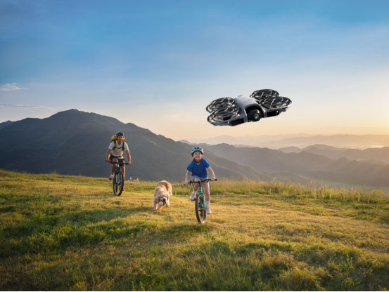 与此同时,DJI Neo 2 的跟随性能也得到了进一步提升,无论是跑步或骑行,都能从容跟拍。空旷场景下,DJI Neo 2 最大跟随速度提升至 12 米/秒[1],时刻跟上运动节奏,配合全向避障功能[1]和全包桨保设计,正面与侧面跟随更安全,让运动场景下的跟拍更自如。