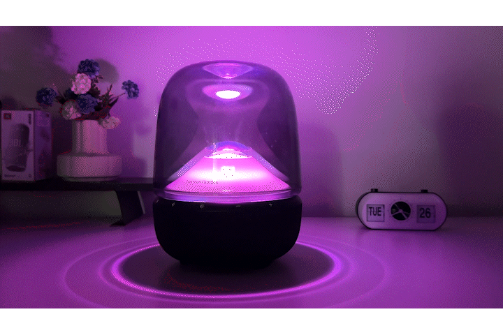 哈曼卡顿音乐琉璃五代延续了家族式设计语言,透明的水母造型极具辨识度。其透明的设计不仅美观,还能让你清晰地看到内部精心设计的发声单元和灯光结构,科技感与艺术感完美融合。
