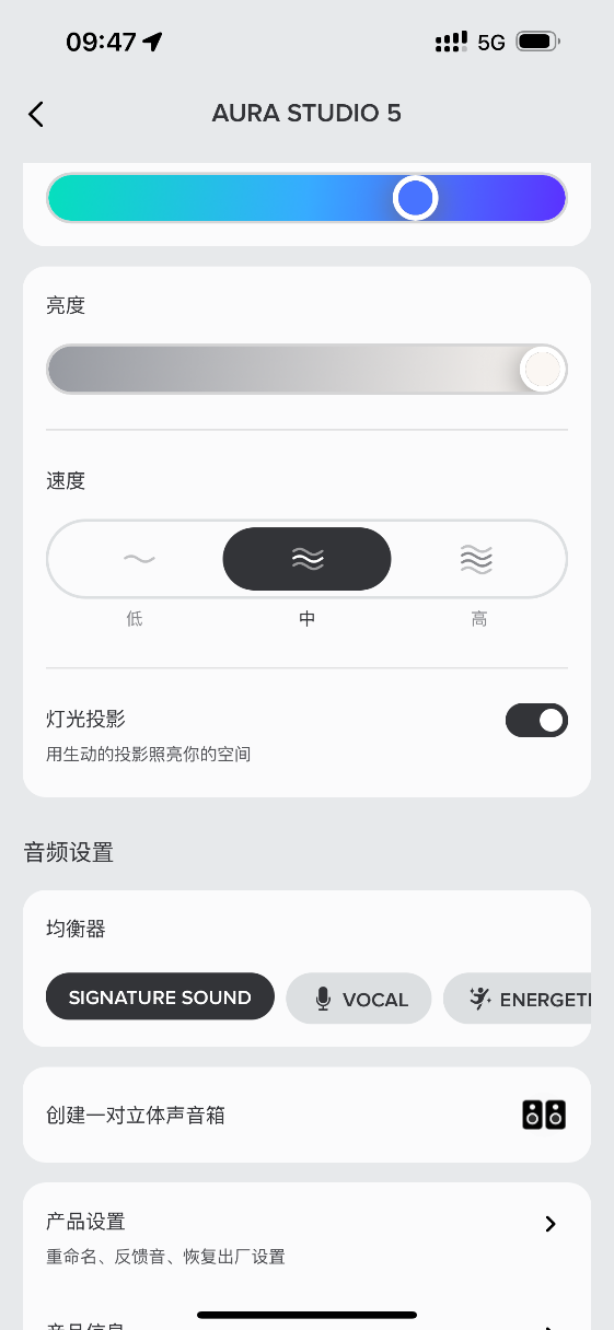 操控体验的升级,是全新音乐琉璃五代在技术上与时俱进,且很“听劝”的完美诠释,比如前面我们说过的操控按钮,自带背光,独立设计,包括音量调节、光效切换、蓝牙连接,一目了然,非常便于操控。