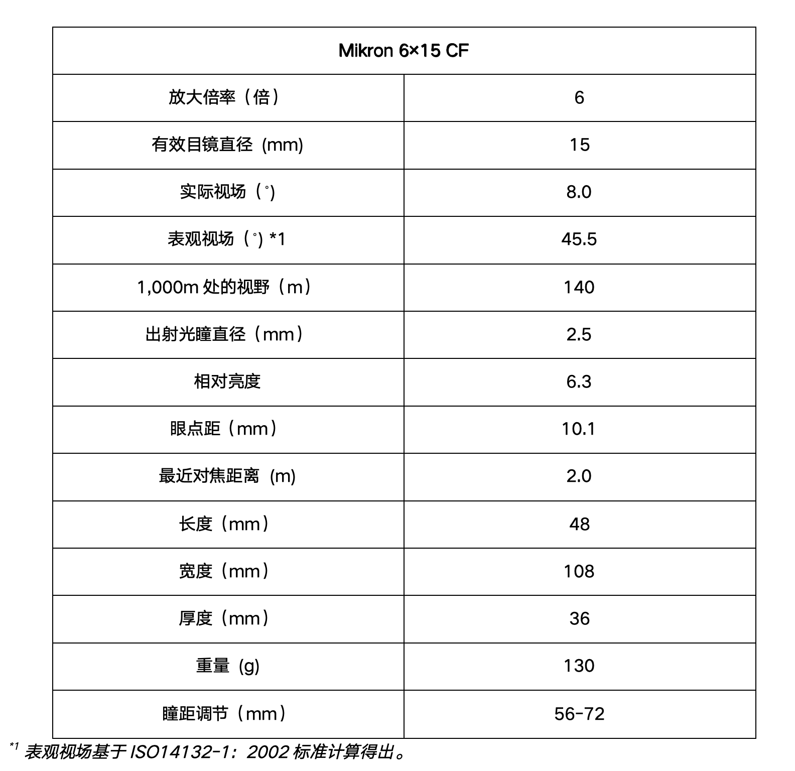 Mikron 6×15 CF以银色金属外观亮相,延续Mikron系列精密感十足的设计语言,同时融入怀旧个性元素,兼具高级质感与便携属性。其搭载尼康标志性的CF多层镀膜技术,有效提升光线透过率、减少反光干扰,确保成像明亮清晰、色彩还原真实,适配多元实用场景。配备6倍放大倍率,适用于短距离观赏。最近对焦距离约2.0米,即使在美术馆、博物馆等具有观赏距离限制的场所也能清晰观测。