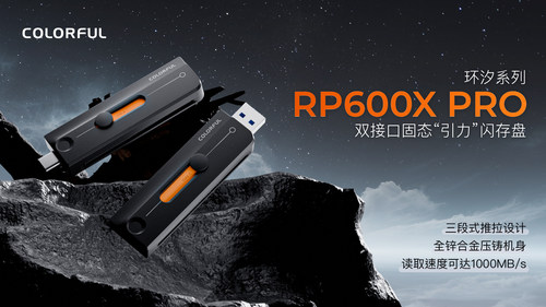 为了给用户带来更卓越的存储体验,七彩虹存储产品线正式推出新款USSD——RP600X PRO双接口固态“引力”闪存盘。新品以其高达1000MB/s的读取速度、双接口自由切换的便捷设计以及出色的便携性,正式开启了高效移动存储的新篇章。