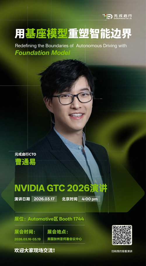 本次GTC大会上,元戎启行将在Automotive展区(展位:1744) 展示其在智能驾驶领域的最新成果。更值得关注的是,公司CTO 曹通易将于北京时间3月17日下午4点发表题为 “用基座模型重塑智能边界” 的主题演讲。