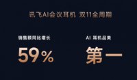 辛文辉 · 2024-11-12 15:05 - 讯飞AI会议耳机“双十一”战绩揭晓:销售额大涨59%%,霸榜入耳式蓝牙耳机大类目