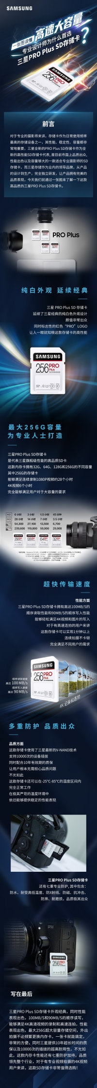 伴随着4K视频的全面普及,专业设计师对于SD卡存储设备的要求越来越高,今天我们就来和大家看一款专业设计师、内容创作者极力推荐的三星PRO Plus SD存储卡,这款存储卡使用了三星最新的V-NAND技术,256G的超大容量和100/90MB/S,满足4K视频的录制,同时七重防护,防水防磁,耐高温,品质出色,是目前市面上表现极其优秀的SD存储卡。