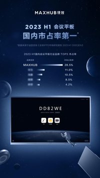 迪显咨询发布的《全球IFPD市场研究报告 2023 H1 DISCIEN》指出,MAXHUB以28.5%%的市占率登顶2023 H1会议平板国内市占率一*。洛图科技发布的《中国&全球大尺寸商用交互平板市场分析报告 2023 H1》也显示,2023年H1全球商用领域品牌格局,MAXHUB以15.8%%位于全球一,而国内市场,2023 Q2,MAXHUB以24.6%%再次蝉联一*。而奥维睿沃发布的2023年H1《AVC Revo-中国大陆小间距LED产业分析报告》则显示,MAXHUB母公司视源股份以37.3%%的市占率斩获2023 H1 LED一体机国内市占率一*。